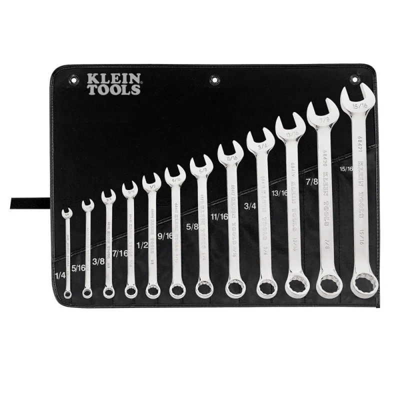 Use this Klein Tools 12-Piece Combination Wrench Set to help you complete your next professional or home improvement project. The wrench set includes 12 standard wrenches and a pouch for easy storage and carrying.