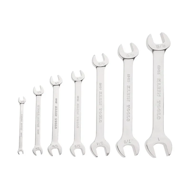 Klein Tools’ 7-Piece Open Ended Wrench Set contains seven of the most commonly used wrench sizes. Each open-ended wrench is forged from the highest quality alloy steel. The durable chrome-plated finish is corrosion resistant.