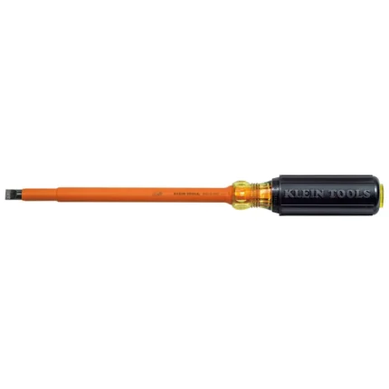 These 8-Inch Klein Tools Insulated Heavy-Duty Diagonal-Cutting Pliers have durable molded insualtion that is flame retardant, impact resistant and clearly marked with 1000-volt rating. The knives are heavy duty inducion hardened steel that can cut ACSR, screws, nails, and most hardened wire. Their high-leverage design allows for them to have 36-percent greater cutting power than other similar plier designs.