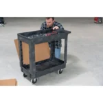 Rubbermaid FG450089BLA 18″ W x 33″ H x 39″ L Utility Service Cart 2 Shelf Flat Handle