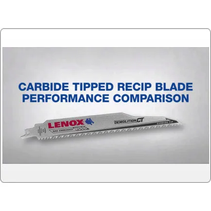 Each tooth is precision ground to cut through nails with easeLENOX DEMOLITION CT™ 6 TPI CARBIDE TIPPED RECIPROCATING SAW BLADES