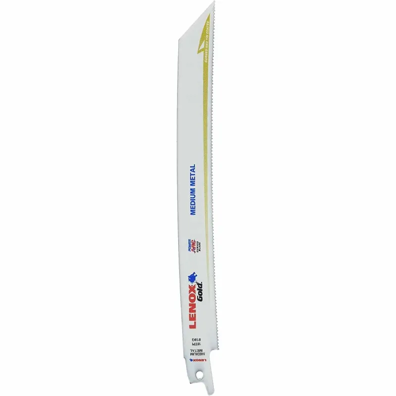 Lenox 21084B818GR Gold Power Arc 8″ L x 18 TPI Bi-Metal Medium Metal and Thin Metal Cutting Reciprocating Saw Blade (25PK) Titanium Nitride Coating
