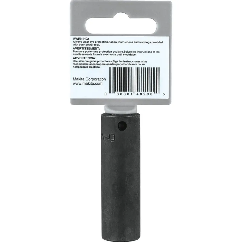 Makita Deep Well Impact Sockets are the perfect accessory for a high torque impact wrench when taking on demanding applications like driving large lags through support beams, setting anchors, and removing stuck weather-rusted nuts. Makita Deep Well Impact Sockets are constructed with Chromium-Molybdenum Steel (CR-MO) and black oxide coated for longer life. The sockets have a 2-1/2” length for longer reach and the ability to fasten over longer threads. They are engineered for use with high-torque impact wrenches, and can also be used with impact drivers (adapter required, sold separately) and ratchets. Makita Deep Well Impact Sockets are ideal for tilt-up contractors, formers, framers, deck builders, and more.