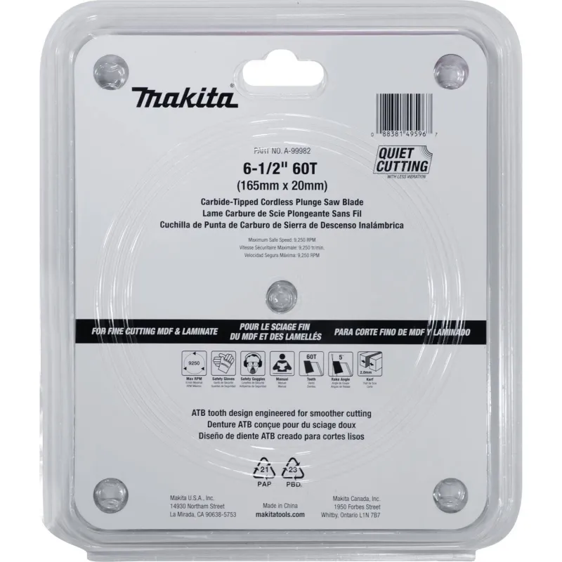 Makita A-99982 6-1/2″ 60T (ATB) Carbide-Tipped Cordless Plunge Saw Blade