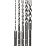 - Set includes (1) 3/16″ x 6″, (1) 1/4″ x 6″, (1) 5/16″ x 6″, (1) 3/8″ x 6″, (1) 1/2″ x 6″ SDS-PLUS bits