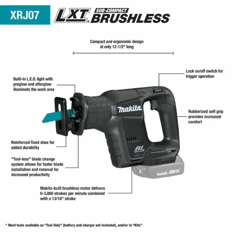 • (1) 18V LXT® Sub-Compact Brushless Recipro Saw (XRJ07ZB)