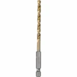 - (1) 3/16″ Titanium coated drill bit, 1/4″ hex shank