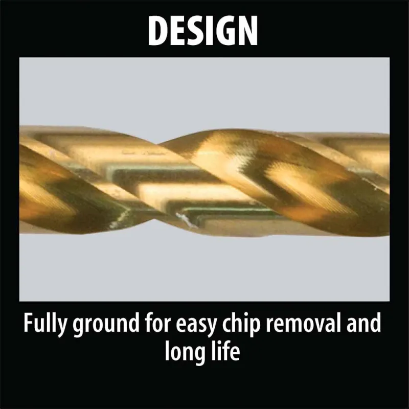 • (1) 5/16″ Titanium coated drill bit, 1/4″ hex shank