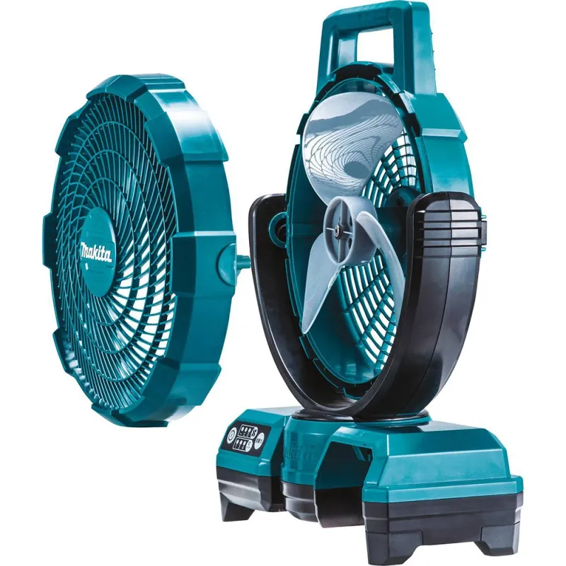 The Makita® DCF203Z 18V LXT® Lithium-Ion cordless fan (model DCF203Z) is a powerful and portable solution for painters, contractors, and more. The DCF203Z has three settings for optimal air velocity control. It can be powered by Makita® 18V LXT Lithium-Ion batteries or an AC adapter. The fan automatically oscillates 45° right and left and manually tilts 90° up and 45° down for convenience redirection of air flow. It’s part of Makita’s expanding 18V LXT system, the world’s largest cordless tool system powered by 18V Lithium-Ion batteries. Makita® 18V LXT Lithium-Ion batteries have the fastest charge times in their categories, so they spend more time working and less time sitting on the charger.