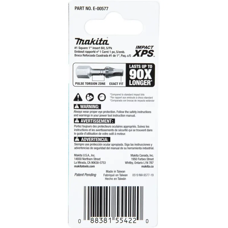 Makita E-00577 Impact XPS #1 Square 1″ Insert Bit, 5 Pack