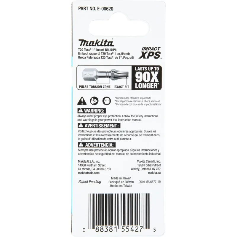 Makita E-00620 Impact XPS T20 Torx 1″ Insert Bit, 5 Pack