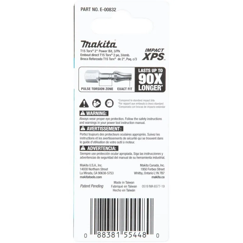 Makita E-00832 Impact XPS T15 Torx 2″ Power Bit, 3 Pack