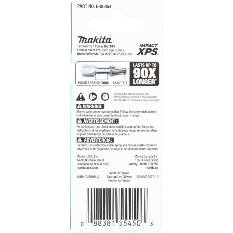Makita E-00854 Impact XPS T25 Torx 2″ Power Bit, 3 Pack