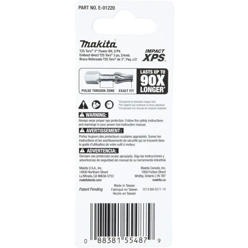 Makita E-01220 Impact XPS T25 Torx 3″ Power Bit, 2 Pack