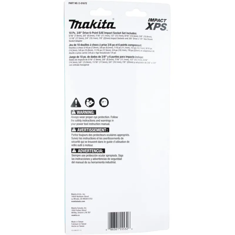 Makita E-01672 Impact XPS 10-Piece 3/8″ Drive 6-Point SAE Impact Socket Set