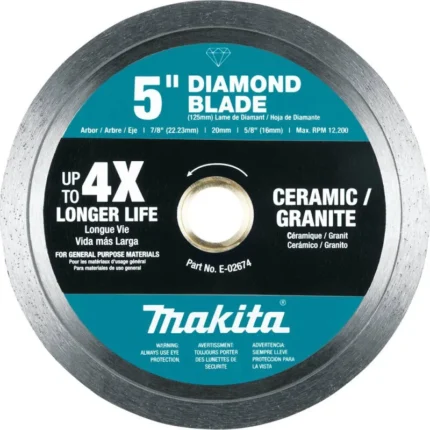 The Makita 9″ Diamond Blade, Segmented, General Purpose (E-02515) is ideal for wet or dry cutting applications including block, brick and concrete. The segmented rim design incorporates slots to deliver a faster, cooler cut, with laser-welded segments for improved joint strength. In addition, the optimum bond matrix is engineered for faster, smoother cutting and a long working life. Makita Diamond blades are part of Makita’s broad line-up of solutions for concrete, stone and masonry applications.