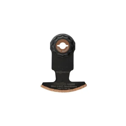 The Makita StarlockMax® Oscillating Multi-Tool 2-3/4″ Hard Metal with Tungsten Carbide 40 Grit Grout and Abrasive Segmented Saw Blade is a versatile addition to the Makita Oscillating Multi-Tool (XMT04 sold separately). This segmented blade is engineered for easy maneuverability into corners and better control between tiles. For use in cutting and removing grout, joint material, tile, and epoxy/fiberglass, along with being suitable for plasterboard and routing grooves in marble and porous concrete for laying concealed cables and pipes. The blade is color-coded brown for easy identification.
