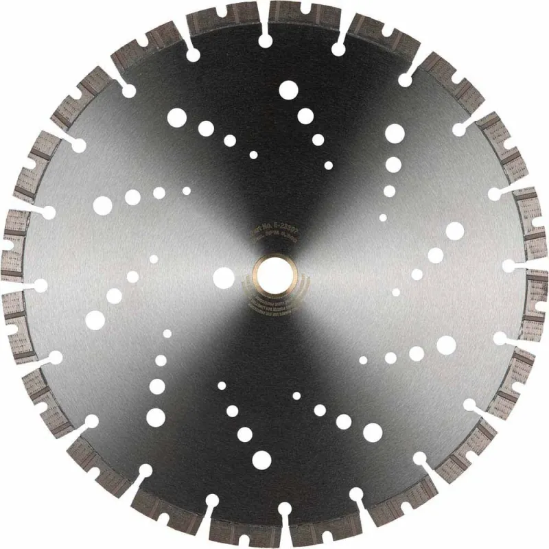 The E-23307 features a u-shaped notch in each segment that efficiently ejects dust from the work area for a smoother and faster cutting experience. It features an optimum bond matrix that provides a faster, longer lasting, and smoother cutting diamond blade with a max RPM of 6,300.
