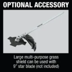 - Large multi-purpose grass shield, can be used with trimmer head (included) or brush cutter blade part no. B-14118 (optional)
