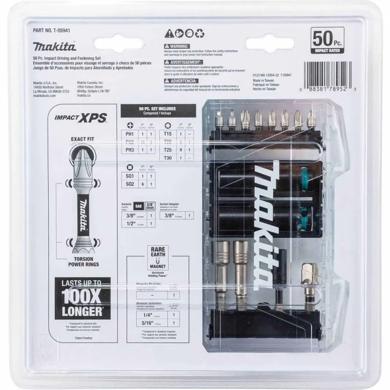 The Makita Impact XPS® 50 Piece Impact Bit Set (T-05941) is expertly engineered to withstand the hardest hitting impact drivers (sold separately). Makita Impact XPS® bits are engineered to last 100X longer than standard impact bits.