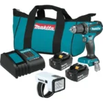 The 18V LXT® 2 Pc. Combo Kit (3.0Ah) (XFD131X2) is an ideal drilling and driving solution for the user who wants a drill with superior power-to-weight ratio with a versatile flashlight for a variety of lighting needs. The Makita 18V LXT® ½” Driver-Drill (XFD131) combines 440 in. lbs. of Max Torque with an efficient brushless motor that delivers up to 50% more work per charge, increased power and speed, and longer tool life. For the pro user, this means more drilling and driving power, greater productivity, and fewer trips up and down the scaffolding or ladder to get to the battery charger. In driver mode, the adjustable torque settings provide more control for a full range of applications, from large fasteners to smaller, delicate screws. It weighs only 3.8 lbs. (with 3.0Ah battery) for increased comfort and superior power-to-weight ratio.Also included in the Kit is the Makita 18V LXT® Compact L.E.D. Flashlight (DML186W) which provides hours of illumination without a cord. It features a compact and ergonomic design for ease of use, with a strap for convenient operation. The flashlight is compact yet bright, with 6 L.E.D. that delivers up to 55 hours of run time on a fully charged 18V 3.0Ah Lithium-Ion battery. For extended run time, it can also be powered by Makita’s other 18V Lithium-Ion batteries (sold separately).The XFD131 and the DML186W are compatible with Makita 18V LXT® Lithium-Ion batteries, from the fast-charging 18V LXT® Compact 2.0Ah battery to full-size 18V LXT® batteries for longer run time. The kit includes an efficient 18V LXT® 3.0Ah battery that reaches a full charge in only 30 minutes for less downtime and increased productivity.