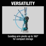 The 18V LXT® 3/8” x 21” Detail Belt Sander (XSB01Z, tool only) delivers corded performance with cordless convenience. The compact design and 160-degree pivoting arm can reach tight spaces and is easier to store. The XSB01TJ is engineered for detail work in wood and steel applications, including fine carpentry and furniture-making, welding, ornamental metal structures, automotive, and more.