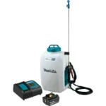 The 18V LXT® 4 Gallon Backpack Sprayer Kit (XSU02SM1) is a garden sprayer for use with pesticides, insecticides, herbicides, fungicides and fertilizers. The 4 Gallon Backpack Sprayer can spray up to 165 gallons with one 18V LXT® 4.0Ah Battery. It can deliver up to 6 hours of run time with 18V LXT® 4.0Ah battery.