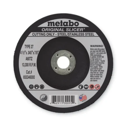 Metabo 655346000 4.5"x.045"x7/8" Type-27 A60TZ Original Slicer Cutting Wheel 50 Pack $236.99 Original price was: $236.99.$47.21Current price is: $47.21.