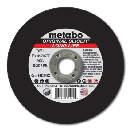 Metabo 655344000 6"x.045"x7/8" Type-1 A60XL Long Life Original Slicer Cutting Wheel 50 Pack $184.99 Original price was: $184.99.$61.66Current price is: $61.66.