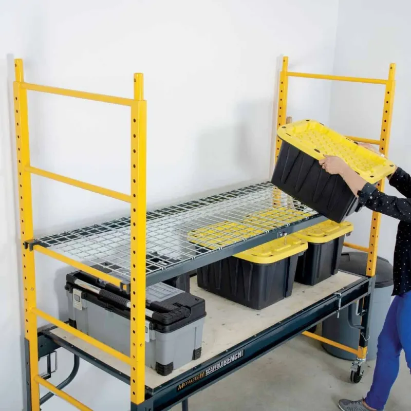 The Metaltech Storage Shelf is an Add-on Shelf for All the Metaltech 6 ft Scaffolding. It works perfectly with the Sacaffold Bench part number I-CISCMT as well.