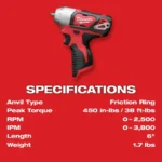 Milwaukee 2463-20 M12 3/8” Impact Wrench (Bare)