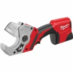 Cutting faster, cleaner and closer than traditional methods, the new M12 Cordless PVC Shear utilizes a super sharp stainless steel blade for burr-free cuts, slices through 2” PVC in as fast as 3 seconds, and offers an offset blade to cut PVC mounted to a stud or close to a wall. Powered by the Milwaukee M12 Lithium-Ion battery, the new PVC Shear is able to cut over 200 times on a single charge.