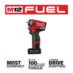 Milwaukee 2552-22 M12 FUEL Stubby 1/4″ Impact Wrench Kit