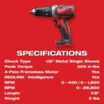 The most Compact Hammer Drill/Driver in its class is more powerful than the competition. Built with a Milwaukee® 4-Pole frameless motor, the M18™ Compact 1/2″ Hammer Drill/Driver delivers 500 in-lbs of torque and up to 1,800 RPM. At only 7-1/4″ length, this drill driver allows you access to the tightest work spaces. An all-metal gear case and 1/2″ metal chuck provide maximum durability, even on the most challenging jobsites. REDLINK™ Intelligence provides advanced protection in abusive situations and manages the tool’s temperature to provide maximum life.