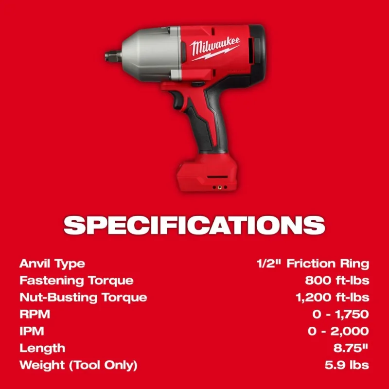 • (1) M18 Brushless 1/2″ High Torque Impact Wrench w/ Friction Ring