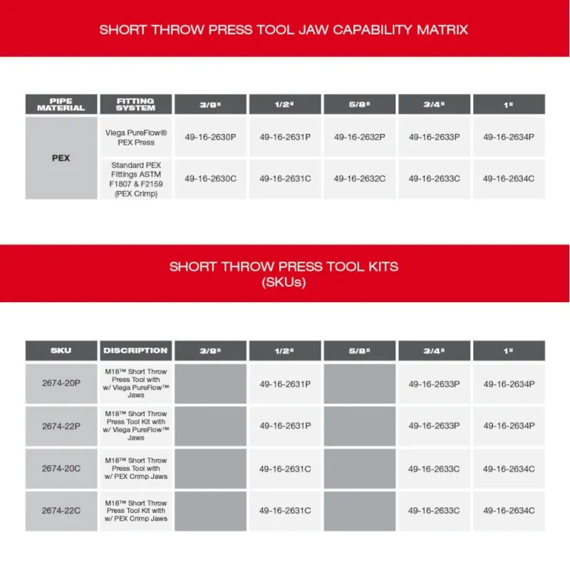 - (1) 49-16-2631P M18™ 1/2″ Viega PureFlow® Jaw for M18™ Short Throw Press Tool