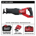 The Milwaukee M18 FUEL™ SUPER SAWZALL® generates the power of a 15A Corded Reciprocating Saw, Faster Cuts than the legendary Milwaukee 15A AC SUPER SAWZALL™; and Up To 150 Cuts in 2×12 SPF per charge. Designed to perform in the toughest applications the M18™ FUEL SUPER SAWZALL® combines Milwaukee’s legendary performance and durability with the portability of the M18 platform. The POWERSTATE™ Brushless Motor Provides 3,000 SPM and higher speeds under load for corded cutting performance. REDLINK PLUS™ intelligence ensures maximum performance and protection from overload, overheating and over discharge. The M18™ REDLITHIUM™ High Output HD12.0 battery delivers unmatched run-time in all applications. The 1-1/4″ stroke length removes more material with each stroke and selectable On/Off Orbital action provides agressive cuts in wood and smooth cuts in metal. Variable speed trigger and 5speed dial provide maximum speed control for any application. The QUIK-LOK® blade clamp allows for toolless blade changes and a rafter hook provides a convenient way to store the saw between cuts.
