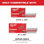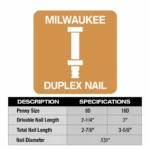 - Only compatible with Milwaukee Collated Duplex Nails (MDP8D-2000, MDP16D-2000)
