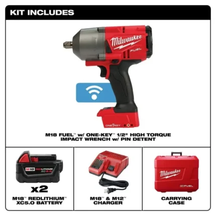 The 2864 M18 FUEL w/ ONE-KEY™ High Torque 3/4” Impact Wrench with Friction Ring provides the Most Powerful, Most Compact, and the Most Repeatable Impact Wrench in the industry! The POWERSTATE™ Brushless motor delivers up to 1,200ft-lbs of fastening torque and 1500ft-lbs of nut-busting torque, providing users a cordless solution that will eliminate the need for corded Impact Wrenches. The industry’s most compact cordless High Torque Impact wrench at 8.59” in length, this tool allows for more access in tight spaces. REDLINK PLUS™ intelligence prevents damage to the tool and battery due to overloading or overheating. REDLITHIUM™ batteries deliver more work per charge and more work over the life of the battery. Compatible with ONE-KEY, this is the industry’s first High Torque Impact Wrench that wirelessly connects to a smart phone to Customize, Track and Manage a tool’s performance and location. Unlimited Tool Customization allows you to connect to the tool and access predetermined set-ups for specific fasteners and materials, or have complete control over output speed and power for the specific application at hand. With ONE-KEY™, users now have a tool that delivers the most repeatable torque output in the industry. Users looking for a targeted torque range now have solution that will get users close to their targeted torque value, reducing the likelihood of significant under or over torque. Users will experience less rework, less damage, and increased productivity that will get users closer to their torque target and will finish with a calibrated torque device to reach their targeted torque value. The tool’s memory supports up to 4 custom profiles that can be easily accessed with the touch of a button on the tool. Once the profiles are saved to the tool, the connection to the smart phone is no longer necessary. Your custom profiles are also saved in the cloud so that they can be accessed at any time. Integrated Tool Tracking, also available through ONE-KEY™, provides full visibility to how and where tools are being used across your network of jobs and users. The app will track all ONE-KEY™ compatible devices within 100 ft range of your phone. By building the functionality into the tool, not the battery, all devices are trackable even if the battery is not charged or on the tool. The app will automatically keep records of the last time a tool was within range of the app, allowing you to pinpoint missing tools quicker and increase accountability of your crew. If you’re having trouble locating a lost tool, expand your search with the help of anybody with the ONE-KEY™ app. By opting in, when any phone with the app comes within 100 ft of your tool, you will receive an updated location. Paired with tracking, Integrated Tool Security provides the ultimate theft protection. Protect your investment with features like tool lock-out, or hide tool from the nearby devices screen so only you can see your tool is in range. If your tool is lost or stolen, render it useless by sending a remote command to the tool to shut itself off the next time it comes within range of any ONE-KEY(TM) app.