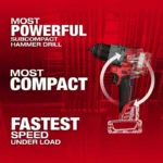 The MILWAUKEE M12 FUEL™ 1/2″ Hammer Drill is the Most Powerful Subcompact Drill Driver, the Most Compact in size, and providing the Fastest Speed Under Load. The MILWAUKEE® POWERSTATE™ brushless motor delivers the most power for the capability to perform the widest variety of applications in high speed for unrivaled subcompact performance. At only 5.9″ in length, this portable drill is the shortest solution in class offering most access into tight spaces. MILWAUKEE® REDLINK PLUS™ Intelligence delivers top of the line thermal performance to give users the Fastest Speed Under Load in order to drill and drive faster than any other subcompact drill. Using MILWAUKEE® M12™ REDLITHIUM™ 2.0Ah compact and 4.0Ah extended capacity battery packs will deliver more work per charge and more work over the life of the pack than competitive batteries. This all-metal 1/2″ chuck and all-metal gearcase deliver best-in-class durability. The mechanical clutch delivers consistent torque for driving fasteners. MILWAUKEE® M12 FUEL™ 1/2″ Drill Driver is part of the MILWAUKEE® M12™ System which is fully compatible with over 125 solutions.