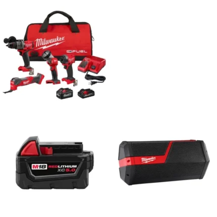 The Milwaukee M18 Cordless Lithium Ion 4-Tool Combo Kit includes the 1/2 in. a hammer drill, 1/4 in. impact driver, M18 FUEL Oscillating Multi-Tool and LED work light. M18 FUEL is fully compatible with the Milwaukee M18 18-Volt cordless system, featuring over 200 solutions. M18 FUEL features the most advanced cordless technology in the industry a POWERSTATE Brushless Motor, REDLINK PLUS Intelligence and REDLITHIUM Battery Technology, resulting in longer motor life, longer run time and more power. The M18 REDLITHIUM HIGH OUTPUT XC6.0 Battery Pack provides 50% more power and runs 50% cooler versus M18 REDLITHIUM XC battery packs.