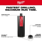The MILWAUKEE Diamond Ultra Wet Core Bits are engineered using only top-quality diamonds to provide the fastest drilling and maximum run time. The thin kerf, segmented diamond rim and laser weld allow for faster holes in concrete, rebar, and even solid steel. These core bits deliver up to 20% longer run-time vs. our previous generation of wet core bits. The Milwaukee Diamond Ultra Wet Core Bits are designed for use with MX FUEL Core Drills and corded core drills for maximum versatility. The Diamond Ultra Core Drill Bit sizes range from 5/8” to 14” to meet all your needs when drilling into even the toughest materials. Sizes from 5/8” – 1-1/2” are compatible with all core drills with a 5/8”-11 thread. Sizes from 2” – 14” are compatible with all core drills with a 1-1/4”-7 thread. Designed for wet use only.