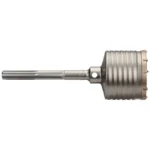 Milwaukee’s one piece carbide tipped core bits are ideal for drilling large holes where the depth is relatively shallow. The core bit cuts a kerf only. The inside core must be removed by the operator before deeper drilling can be accomplished. Use of centering bit 48-20-5495 is recommended (not included). Use drift key 48-20-5497 to remove centering bit from the one piece core bit. The one piece core bits are available in SDS-Max or Spline shanks. They come in a variety of diameters ranging from 1-1/2” to 6” with overall lengths of 11-3/8” or 22” and a drilling depth of 3”. The asymmetric tooth pitch with alternating tooth geometries creates faster material pulverization. The one piece design maximizes energy transfer and the thick wall core body is durable even in large hammers. The fluted core exterior minimizes friction loss and removes debris faster.