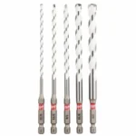 MILWAUKEE® SHOCKWAVE™ Carbide Multi-Material Drill Bits are the most versatile bits, designed to tackle materials such as brick, block, concrete, steel, aluminum, ceramic tile, backerboard, wood, PVC, and drywall. The aggressive multi-grind carbide tip delivers up to 10x longer life in stacked materials and up to 85% faster drilling speeds in metal. Equipped with a 1/4″ hex shank, these general-purpose bits are compatible with impacts, drill/drivers, and hammer drills. MILWAUKEE® SHOCKWAVE™ Multi-Material Drill Bits provides the ideal all-in-one solution for the widest variety of materials, tools, and applications. This kit incudes (1) 5/32″, (1) 3/16″, (1) 1/4″, (1) 5/16″, and (1) 3/8″ SHOCKWAVE™ Carbide Multi-Material Drill Bits.