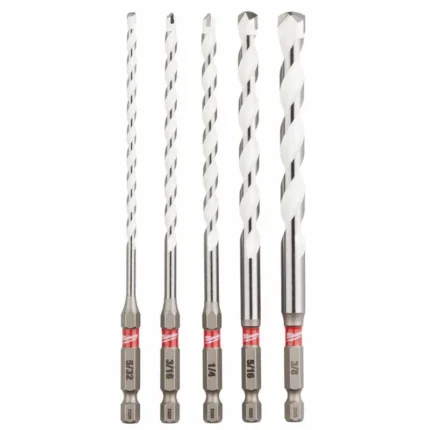 MILWAUKEE® Carbide Hammer Drill Bits use sharpened carbide, delivering up to 5x life in concrete and up to 2x faster drilling. Engineered with a precision ground tip, these bits will deliver faster starts and less walking in concrete, brick, and block. Wide flute design removes dust faster, reducing heat and delivering more holes per charge. These bits are equipped with a 3-flat shank, providing bettter grip and control on the bit. The extended life of the MILWAUKEE® Carbide Hammer Drill Bits provides the ideal solution in concrete, brick, and block for cordless and corded hammer drill/drivers.