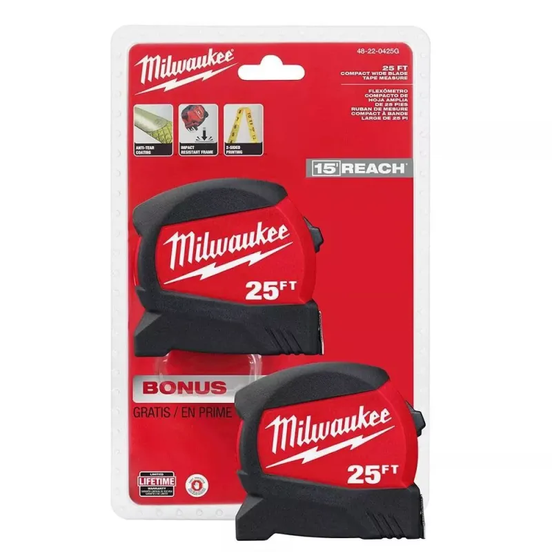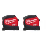 Milwaukee 48-22-0425TR 25′ Compact Wide Blade Measuring Tape 2 Pack