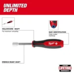 The MILWAUKEE Metric HOLLOWCORE Nut Drivers feature a HOLLOWCORE Shaft, which delivers unlimited depth in threaded rod and long bolt applications. The color-coded markings allow for easy size identification and the wrench-ready steel shanks provide additional leverage for tougher applications. Milwaukee HOLLOWCORE Nut Drivers are backed by Milwaukee’s Limited Lifetime Warranty.