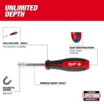 The MILWAUKEE Metric HOLLOWCORE Nut Drivers feature a HOLLOWCORE Shaft, which delivers unlimited depth in threaded rod and long bolt applications. The color-coded markings allow for easy size identification and the wrench-ready steel shanks provide additional leverage for tougher applications. Milwaukee HOLLOWCORE Nut Drivers are backed by Milwaukee’s Limited Lifetime Warranty.