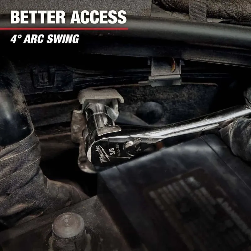 The MILWAUKEE® 3/8 in. Drive Stuby Ratchet offers 4° of arc swing, allowing access to work in tighter spaces. A slim-profile head and flush directional lever combined with the stubby handle length offers increased accessibility. The all-chrome finish provides the ratchet with easy-cleaning. This stubby ratchet is backed by Milwaukee’s Mechanics Hand Tools Lifetime Guarantee.