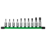 - (10) 3/8″ Drive TORX Bit Socket Sizes Included: T20, T25, T27, T30, T40, T45, T47, T50, T55, T60